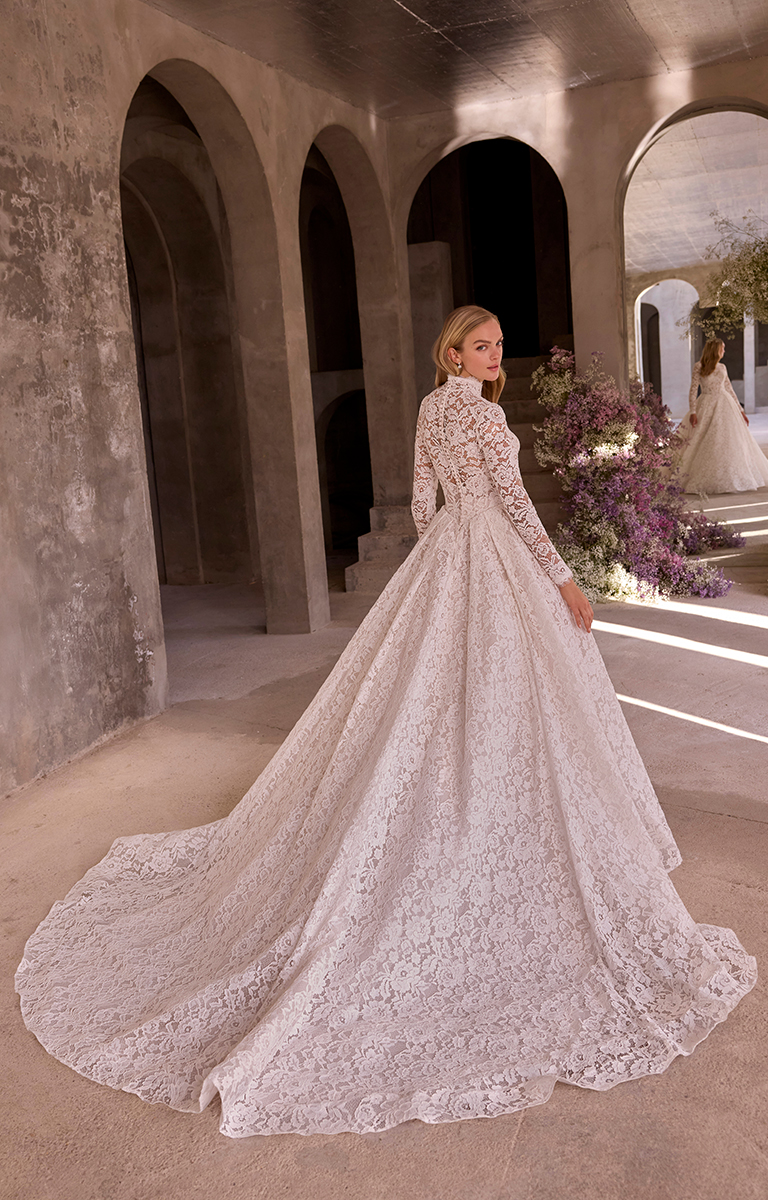 2962 Delia by Mori Lee – Lace Ball Gown Wedding Dress with High Neckline and Long Sleeves